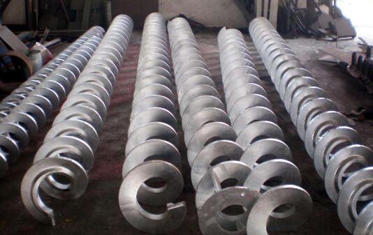 (1)螺旋轴是螺旋输送机实现物料的输送的主要构件,它由螺旋叶片和螺旋轴两部分的构成。按叶片在轴上的盘绕方向不同可分为右旋和左旋两种(逆时针盘绕为左旋,顺时针盘绕为右旋)。螺旋体输送物料方向由叶片旋向和轴的旋转方向决定,具体确定时,*确定叶片旋向,然后按左旋用右手、右旋用左手的原则,四指弯曲方向为轴旋转方向,大拇指伸直方向即为输送物料方向。同一螺旋体上如有两种旋向的叶片,可同时实现两个不同的方向物料的输送。螺旋轴通常采用直径30~70mm的空心钢管。